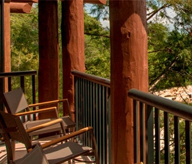 Aventure-se no coração da África neste magnífico hotel Resort. Inspirado pelo tradicional kraal africano, o design curvo em formato de ferradura oferece vistas espetaculares das 4 luxuosas savanas, onde vivem mais de 200 animais e pássaros.