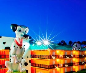 Hospede-se em um Hotel Resort Disney que homenageia as lendas dos filmes da Disney, dos filhotes pintados de Os 101 Dálmatas aos divertidos brinquedos do quarto de Andy.